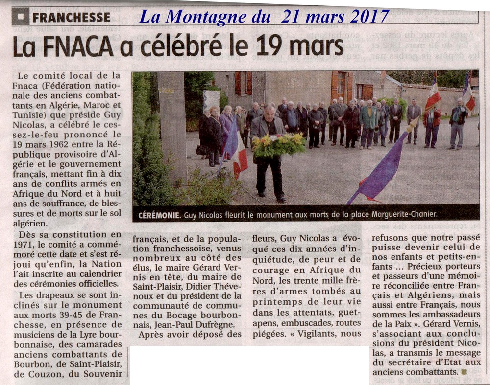 La FNACA a célébré le 19 mars - La Montagne du 21 mars 2017