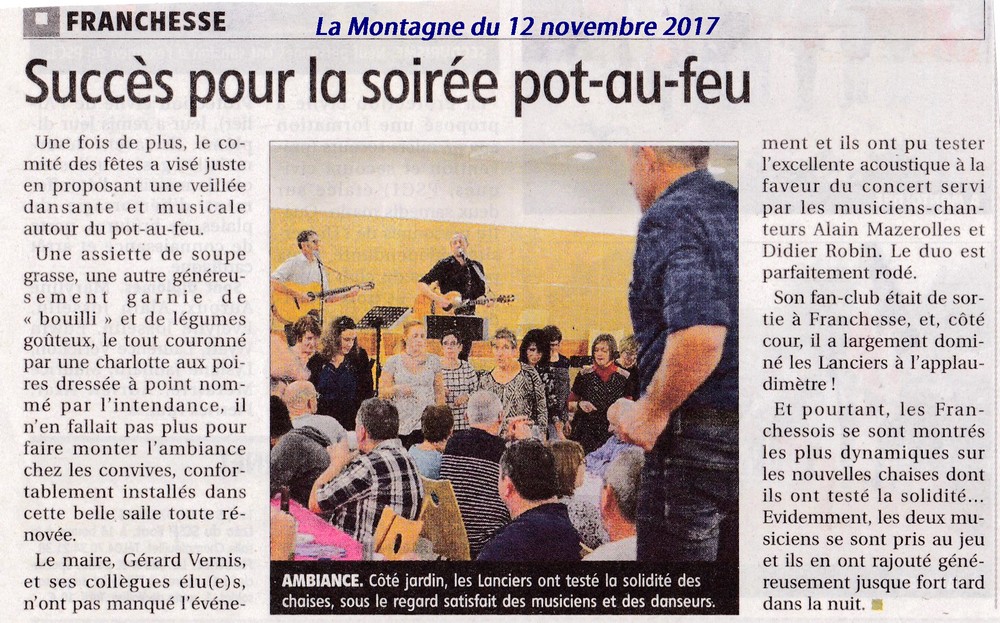 Succès pour la soirée pot-au-feu - La Montagne du 12 novembre 2017