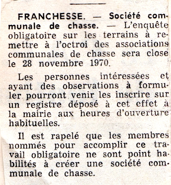 Société communale de chasse - La Montagne du 23 novembre 1970