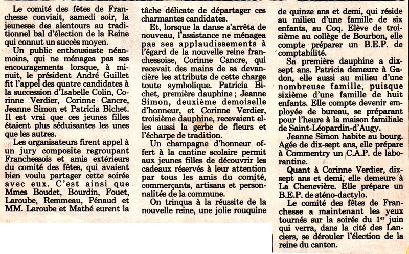Corinne Cancre élue reine de Franchesse - La Montagne du 23 mai 1985