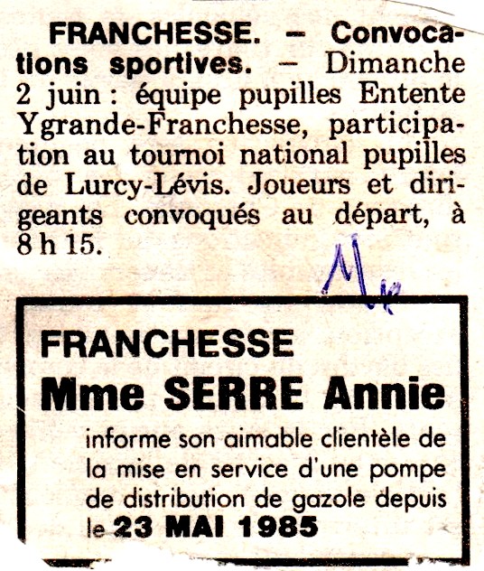 Echos de l'A.S. Franchesse - La Montagne du 22 mai 1985