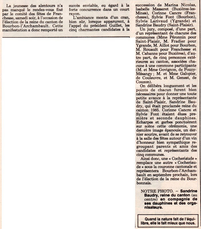 Sandrine Baudry élue reine du canton - La Montagne du 6 juin 1985