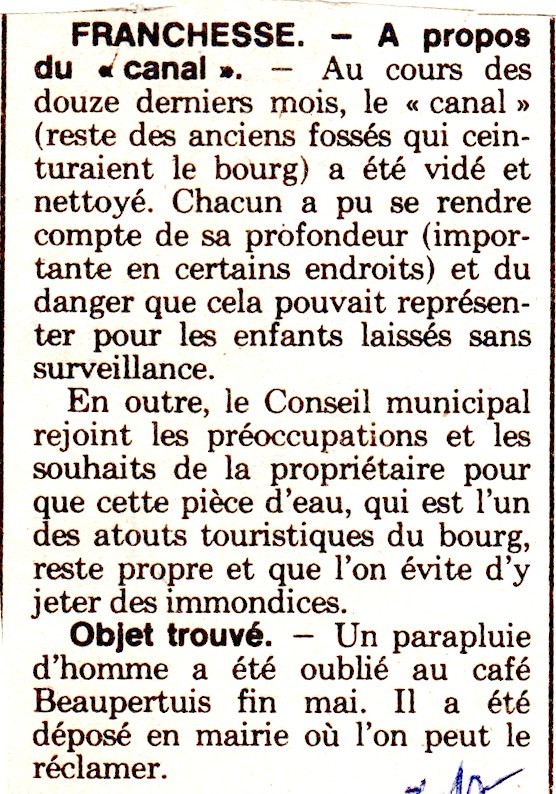 A propos du "canal" - La Montagne du 31 juillet 1985