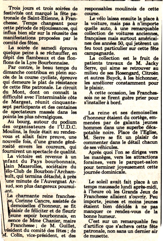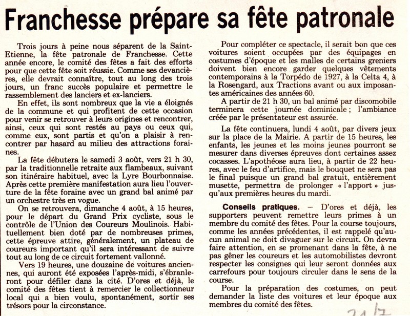 Franchesse prépare sa fête patronale - La Montagne du 31 juillet 1985