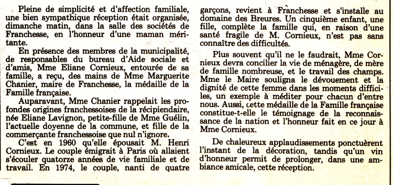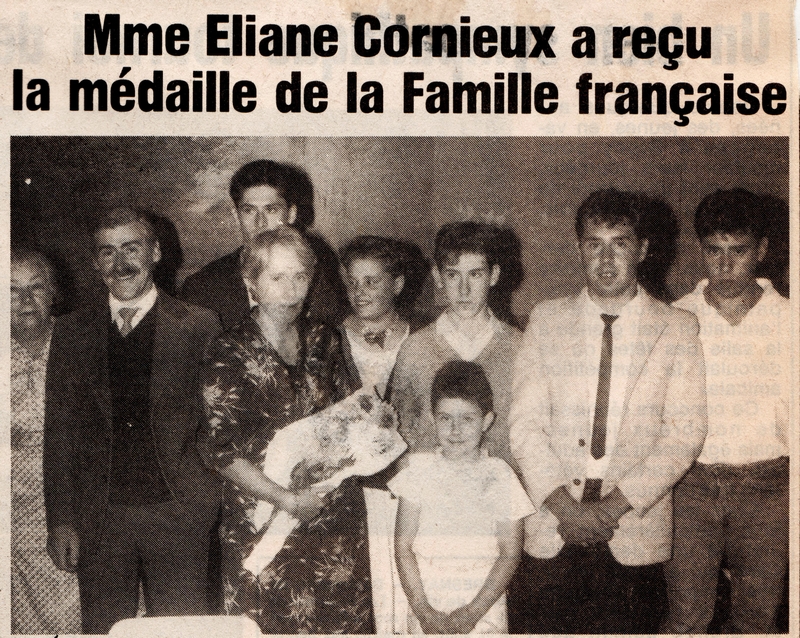 Mme Eliane Cornieux a reçu la médaille de la Famille française - La Montagne du 22 août 1985