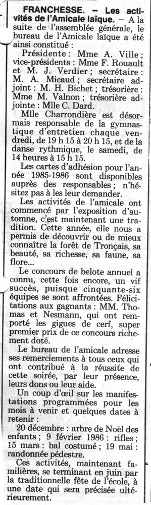 Les activités de l'Amicale laïque - La Montagne du 7 novembre 1985