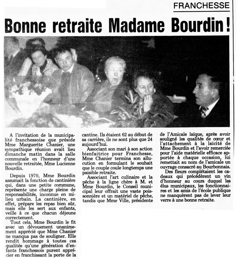 Bonne retraite Madame Bourdin ! - La Montagne du 23 novembre 1985
