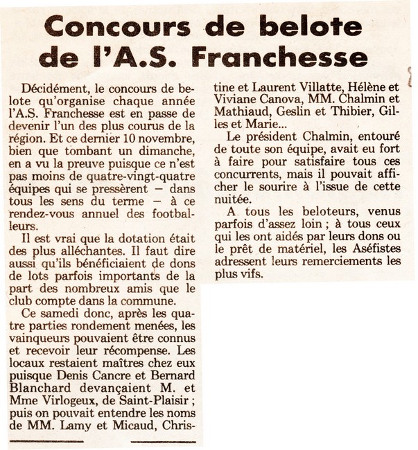 Concours de belote de l'A.S. Franchesse - La Montagne du 25 novembre 1985