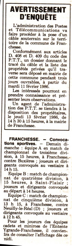 Avertissement d'enquête / Convocations sportives - La Montagne du 1er février 1986