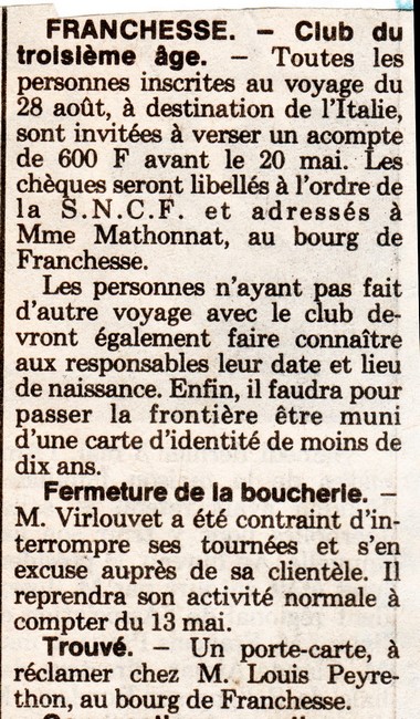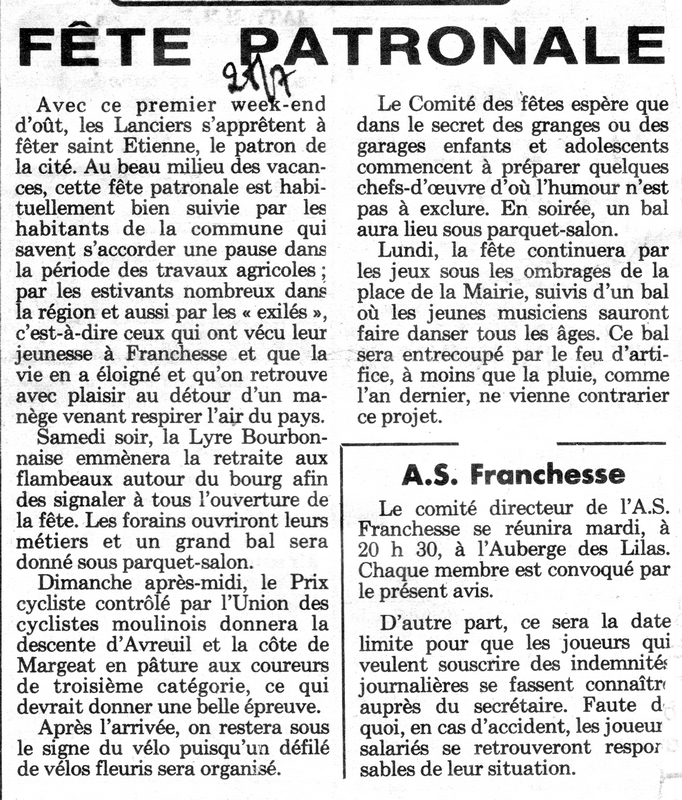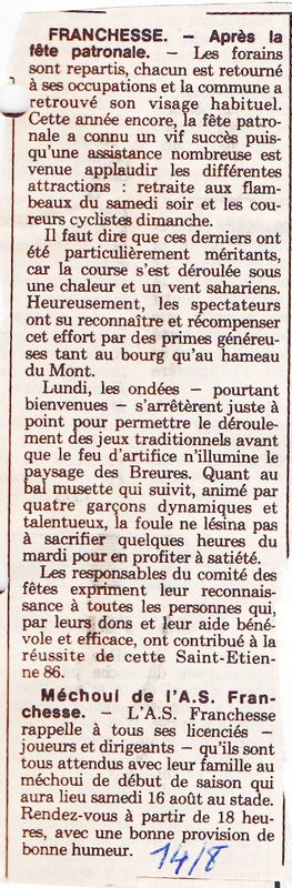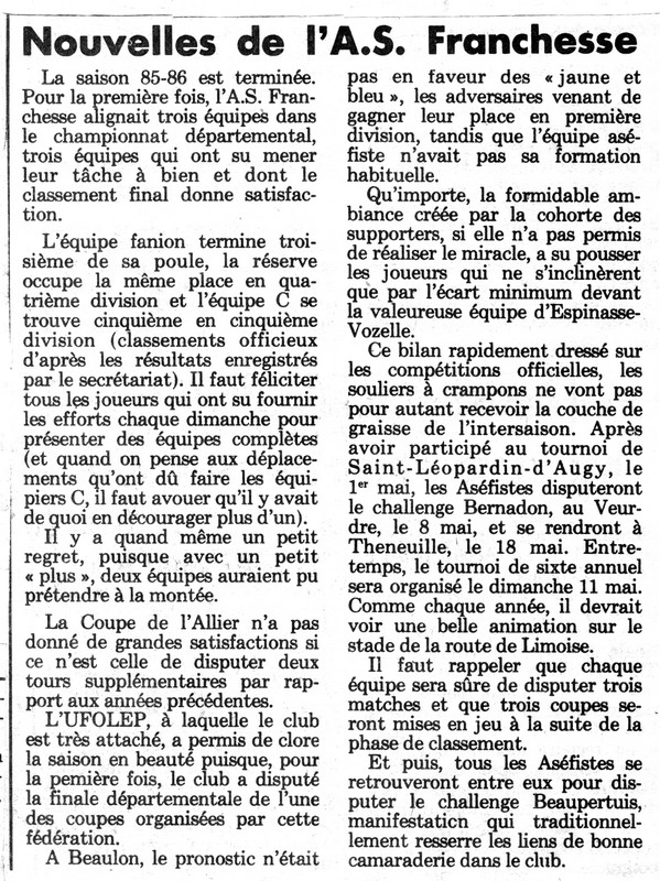 Nouvelles de l'A.S. Franchesse - La Montagne du 2 mai 1986