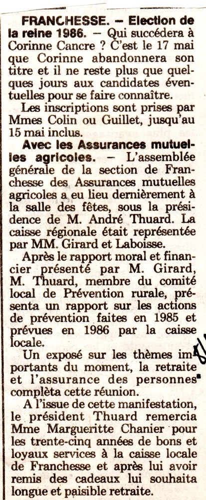 Election de la reine 1986 / Mutuelles agricoles - La Montagne du 8 mai 1986