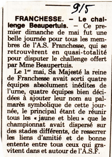 Le challenge Beaupertuis - La Montagne du 9 mai 1986