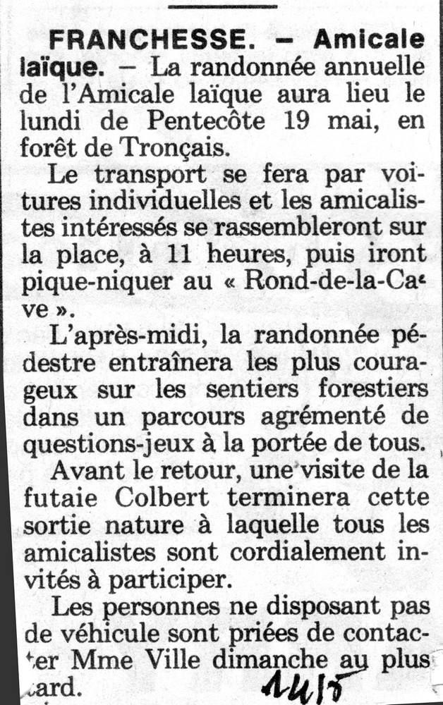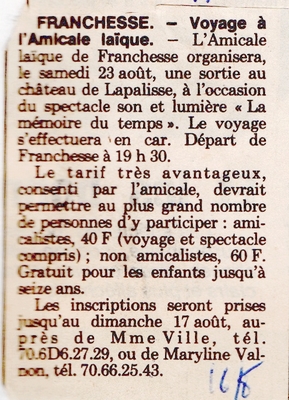 Voyage à l'amicale laïque - La Montagne du 16 août 1986