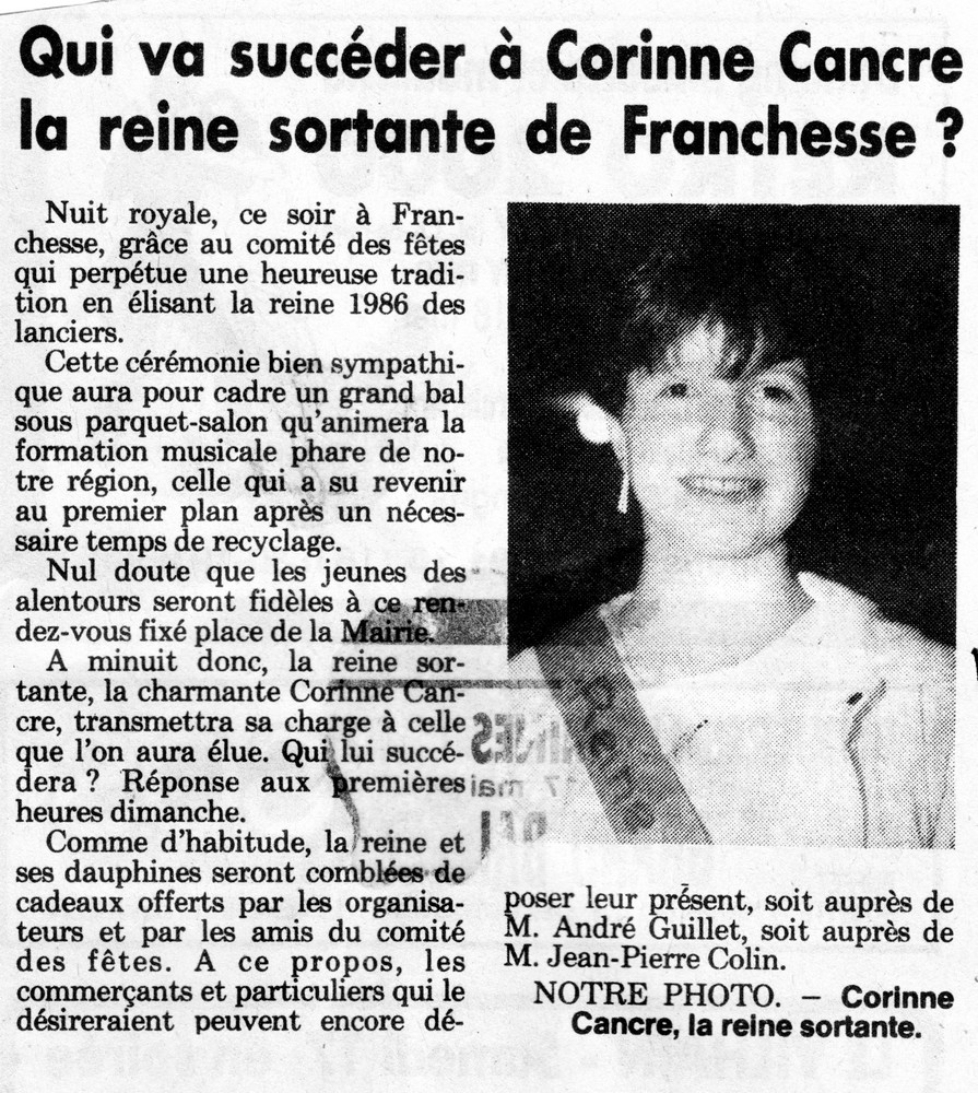 Qui va succéder à Corinne Cancre la reine sortante de Franchesse ? - La Montagne du 17 mai 1986