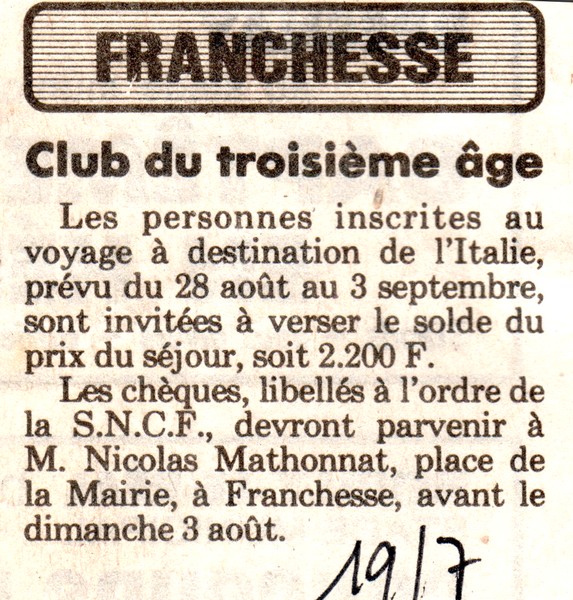 Club du troisième âge - La Montagne du 19 juillet 1986