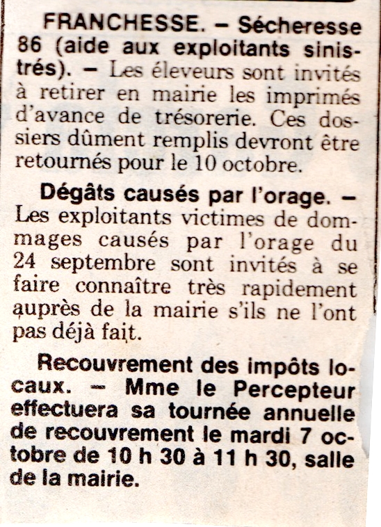 Sécheresse / Orages / Impôts - La Montagne du 17 octobre 1986