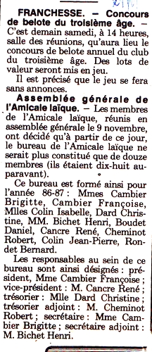 Franchesse s'est souvenu - La Montagne du 16 novembre 1986