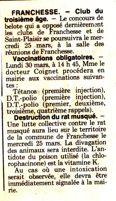 Club du troisième âge / Vaccination / Rat musqué - La Montagne du 23 mars 1987