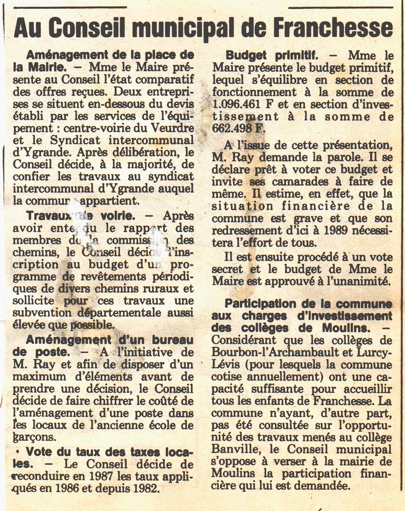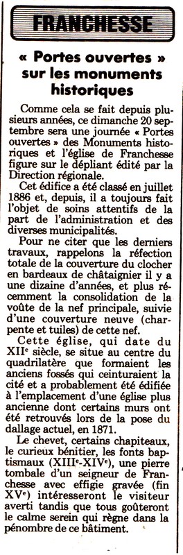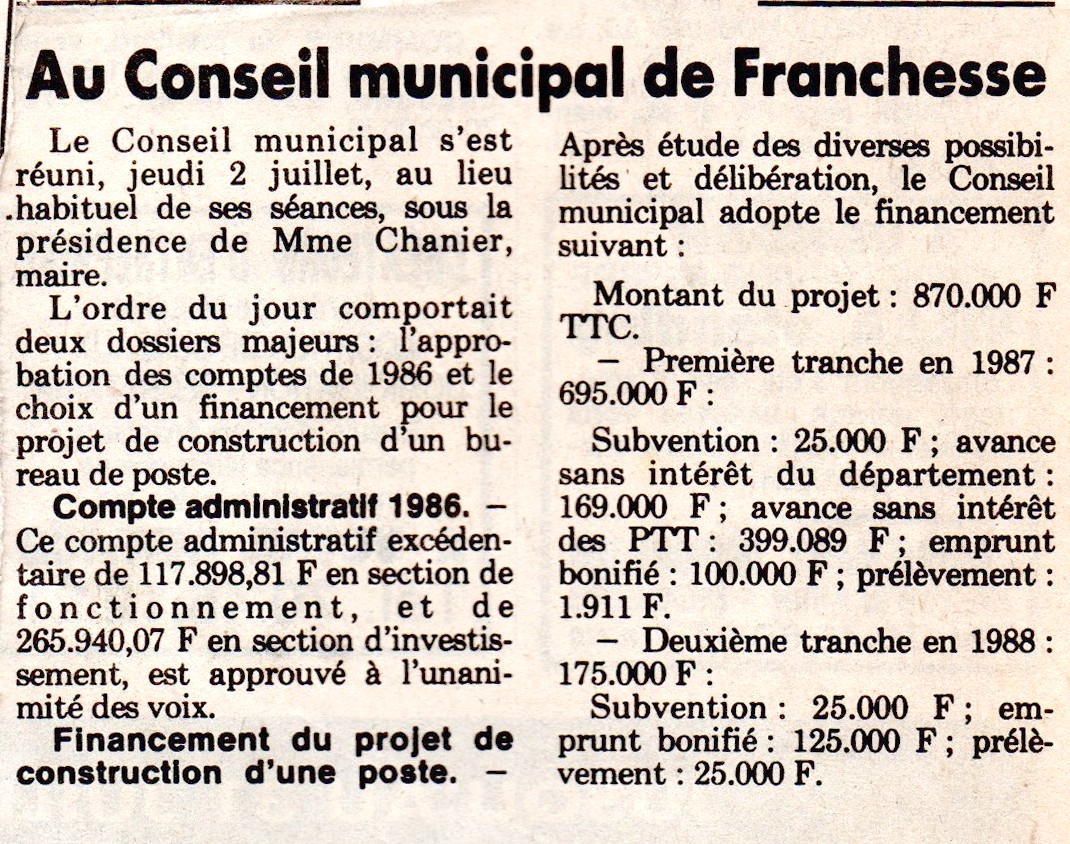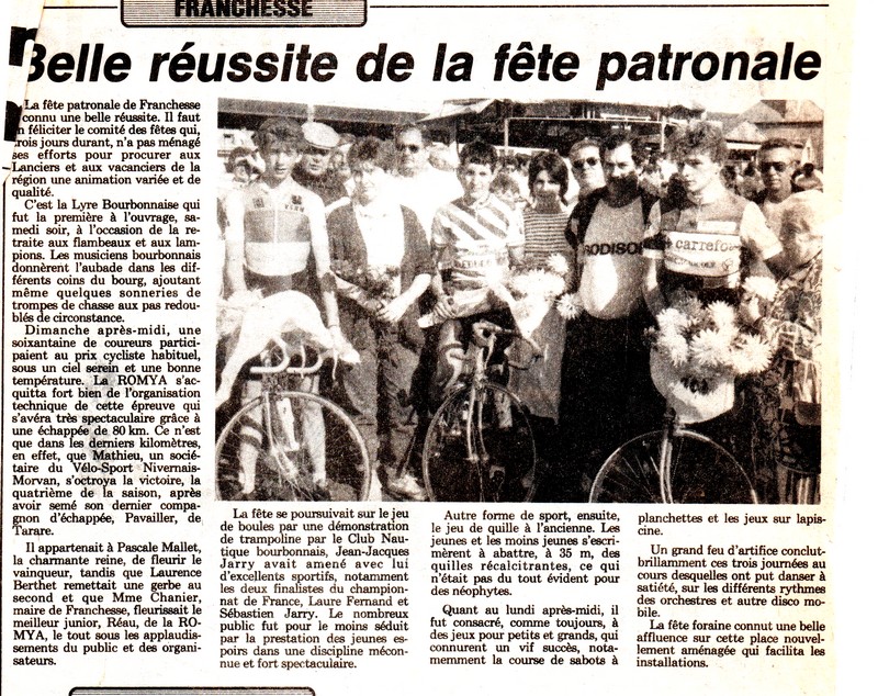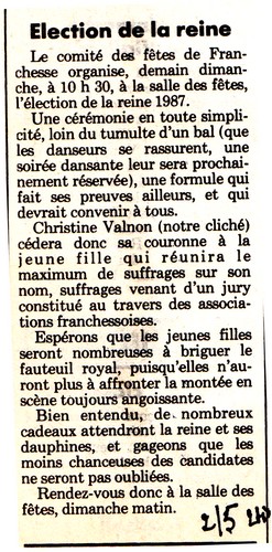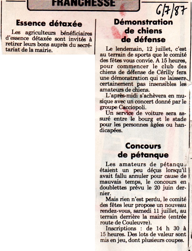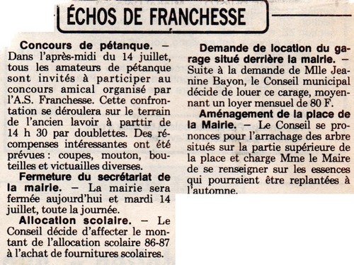 Echos de Franchesse - La Montagne du 13 juillet 1987
