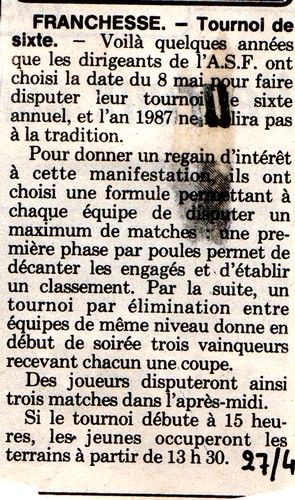 Tournoi de sixte - La Montagne du 27 avril 1987