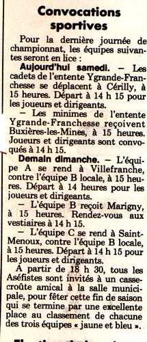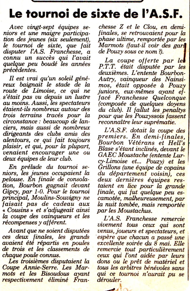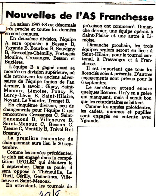 Nouvelles de l'A.S. Franchesse - La Montagne du 28 août 1987