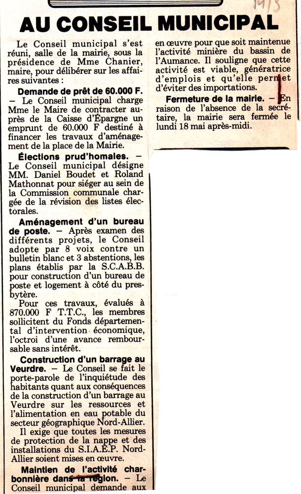 Au conseil municipal - La Montagne du 2 novembre 1987