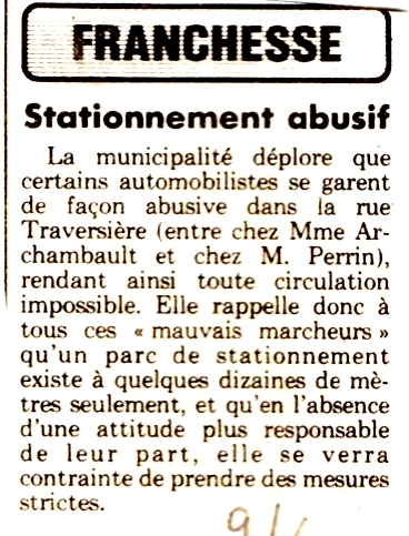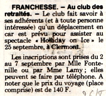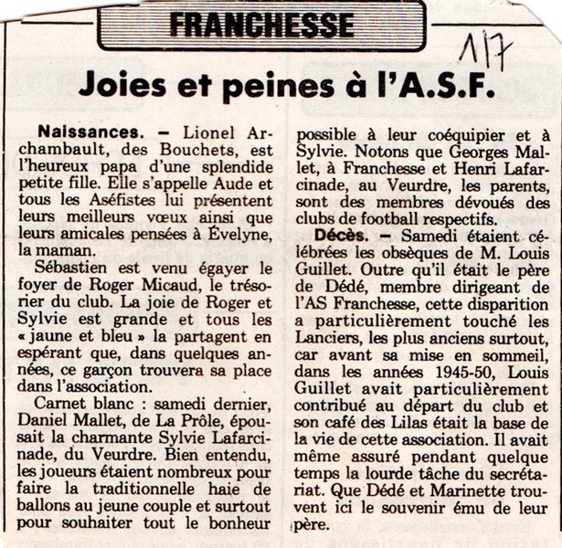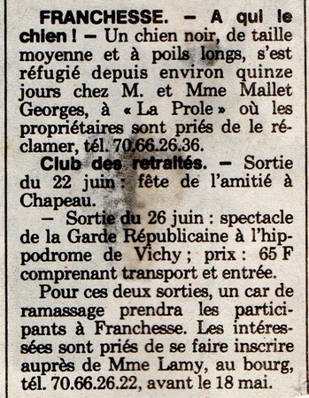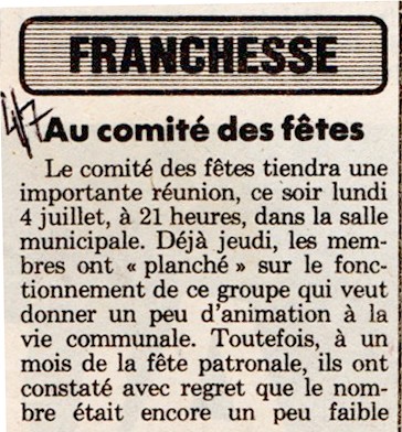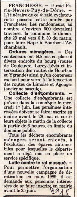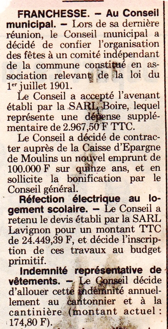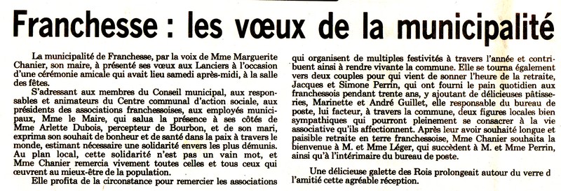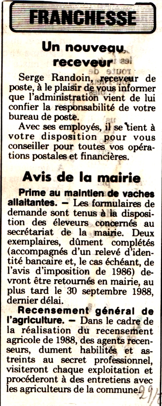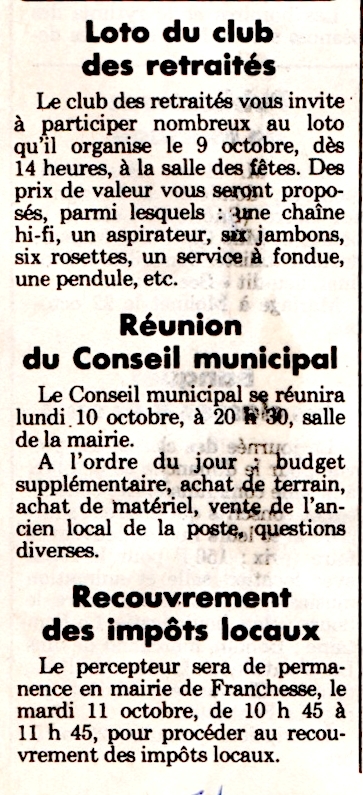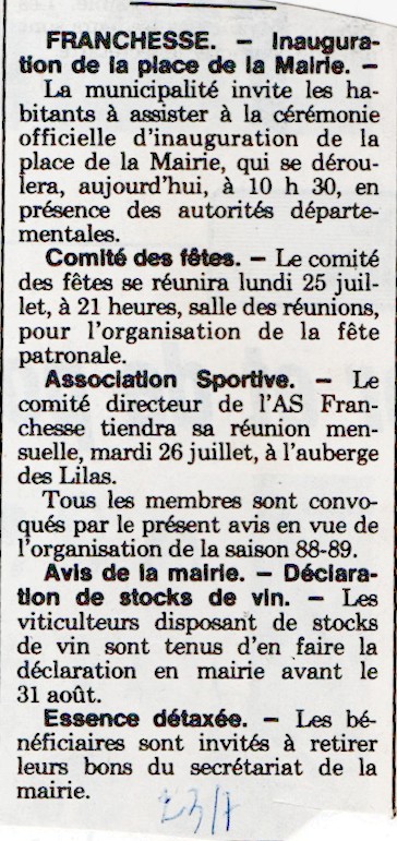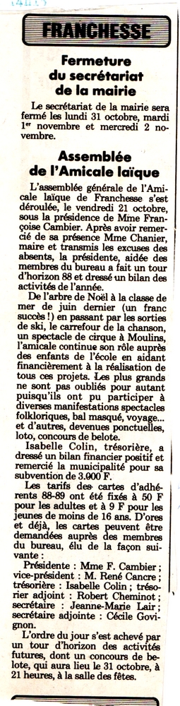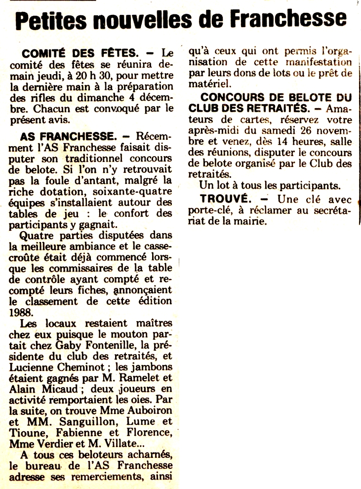 Petites nouvelles de Franchesse - La Montagne du 23 novembre 1988