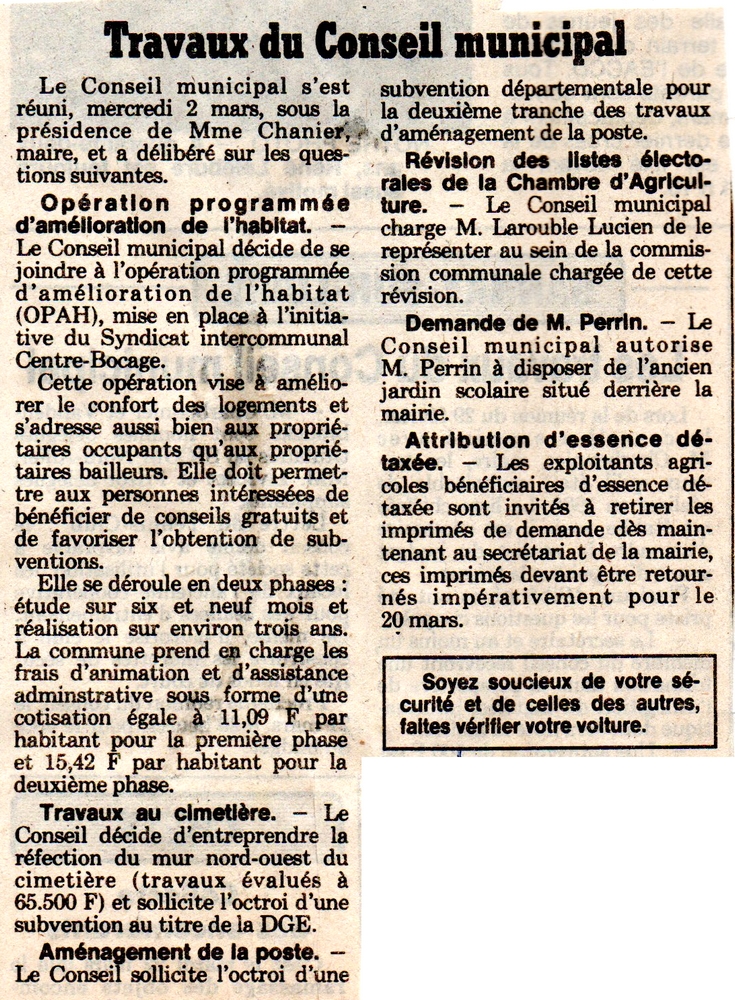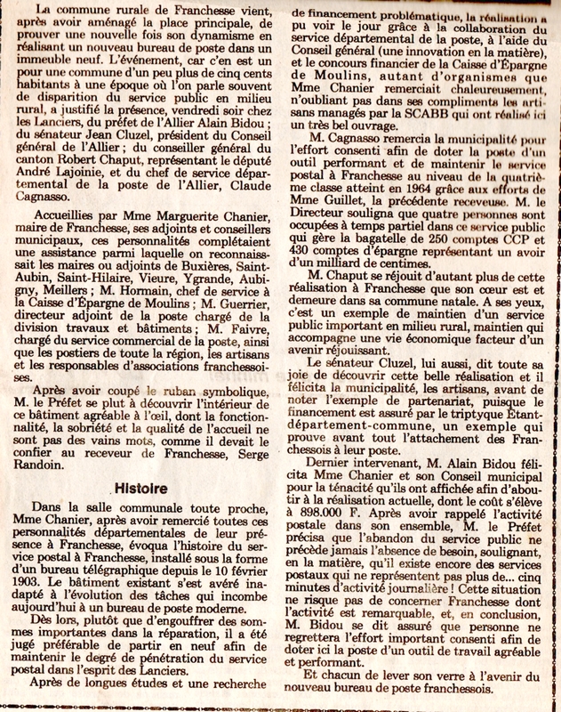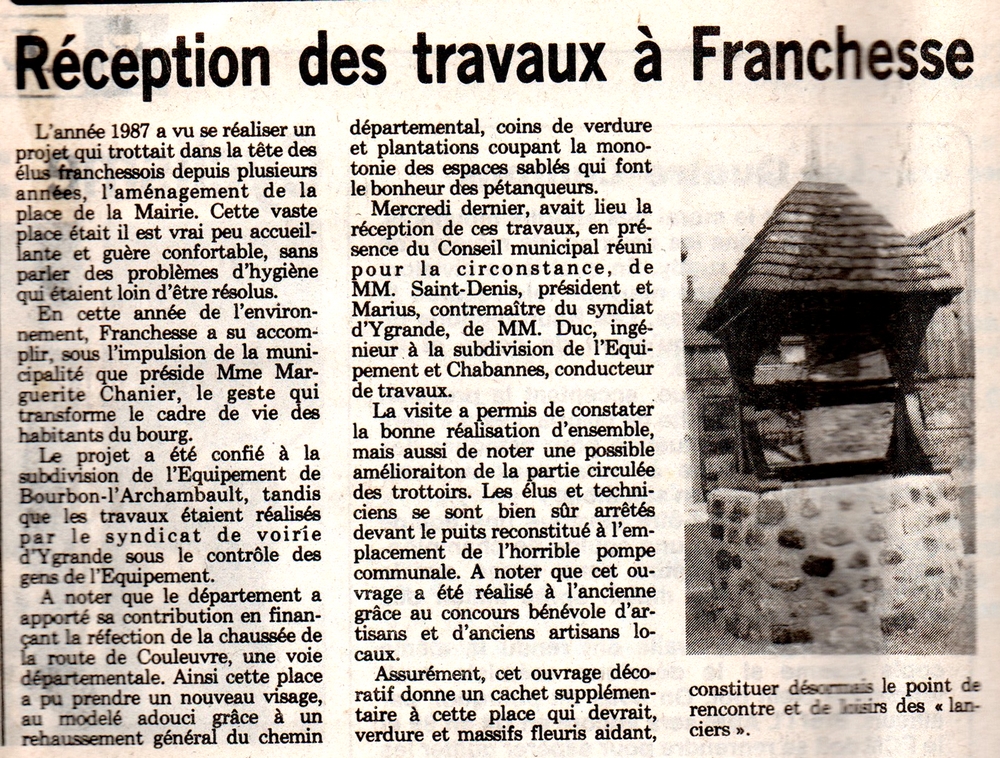 Réception des travaux à Franchesse - La Montagne du 22 mars 1988