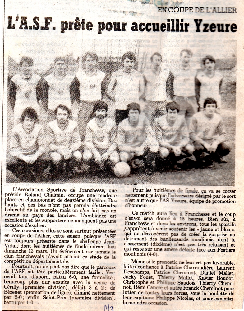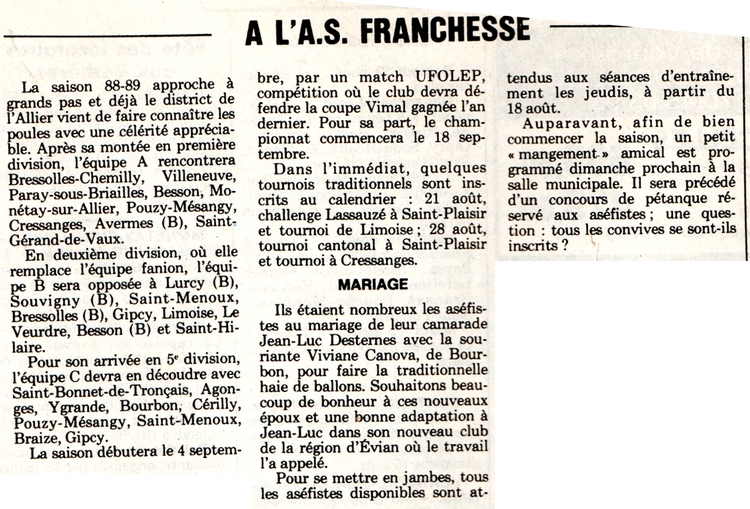 A l'A.S. Franchesse - La Montagne du 11 août 1988