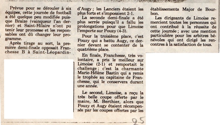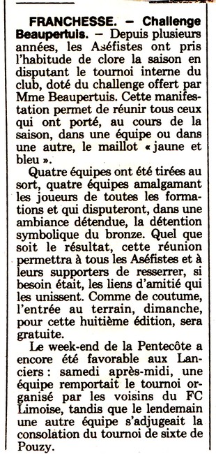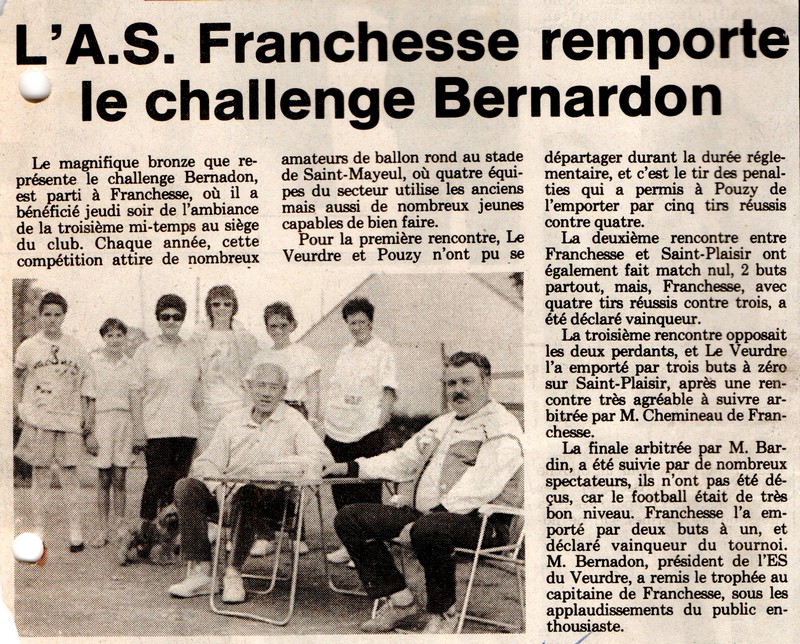 L'A.S. Franchesse remporte le challenge Bernardon - La Montagne du 15 mai 1988