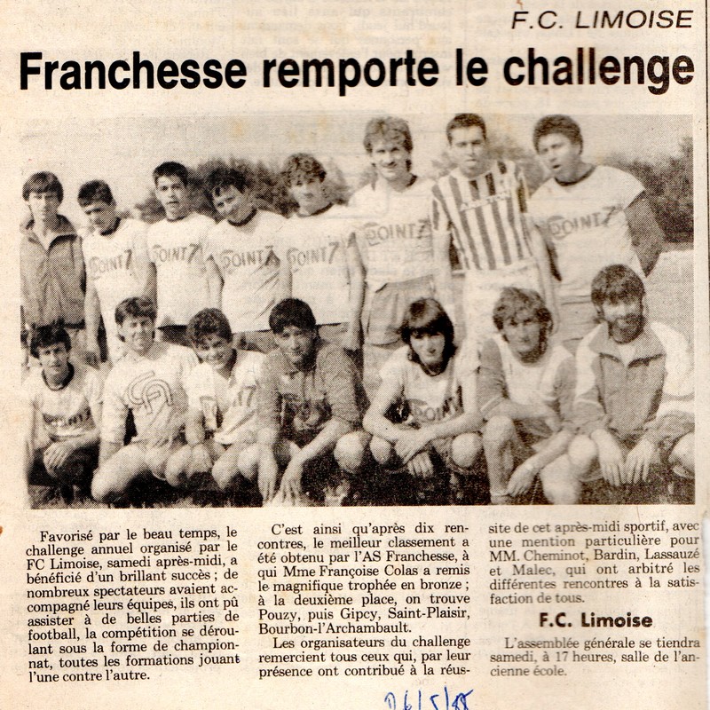 Franchesse remporte le challenge - La Montagne du 26 mai 1988
