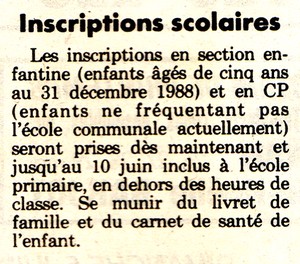 Inscriptions scolaires - La Montagne du 29 mai 1988