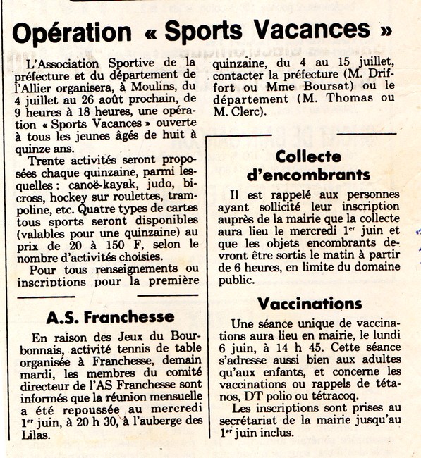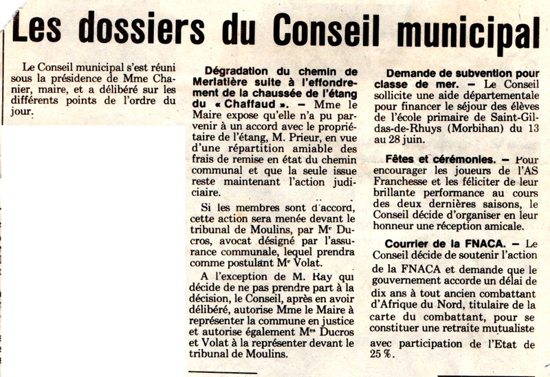 Les dossiers du Conseil municipal / Bonnes nouvelles à l'A.S. Franchesse - La Montagne du 7 juin 1988