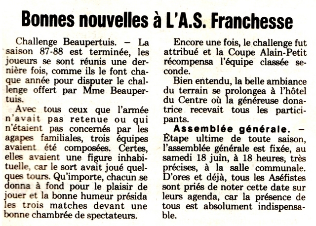 L'A.S. Franchesse a tenu son assemblée générale - La Montagne du 25 juin 1988