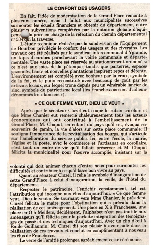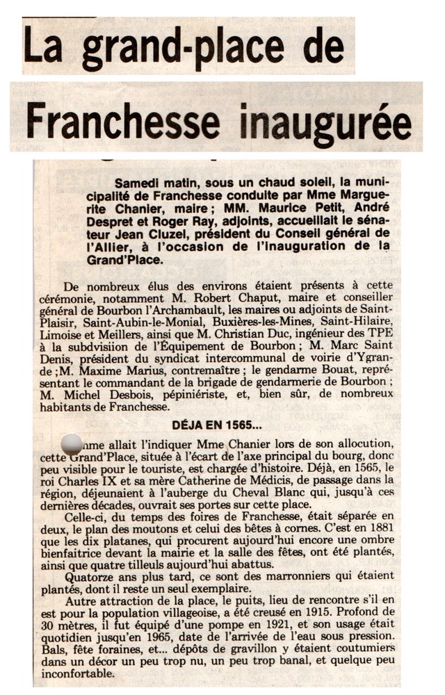 La grand place de Franchesse inaugurée - La Montagne du 27 juillet 1988