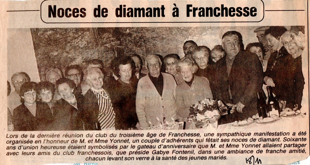 Noces de diamant à Franchesse - La Montagne du 18 novembre 1988