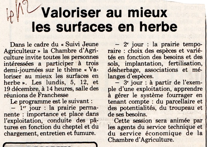 Valoriser au mieux les surfaces en herbe - La Montagne du 4 décembre 1988