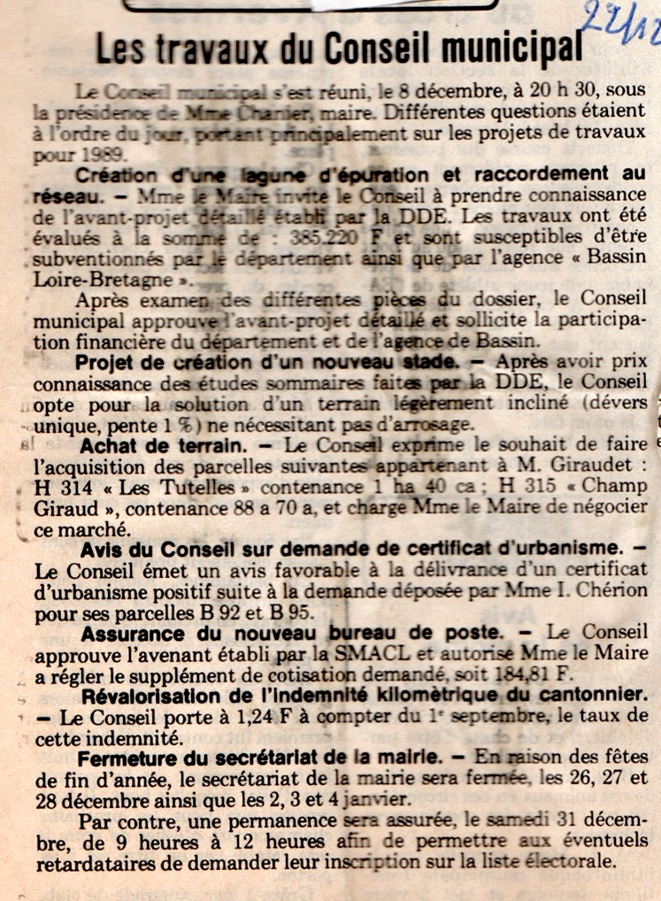 Au conseil municipal - La Montagne du 22 décembre 1988