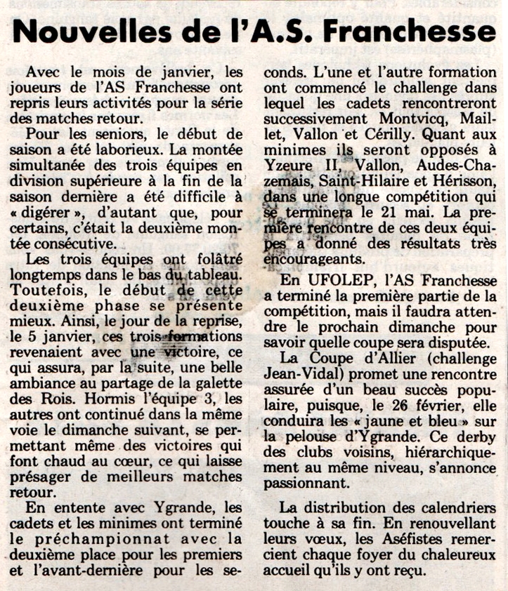 Nouvelles de l'A.S. Franchesse - La Montagne du 23 janvier 1989