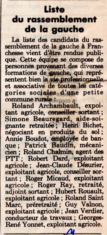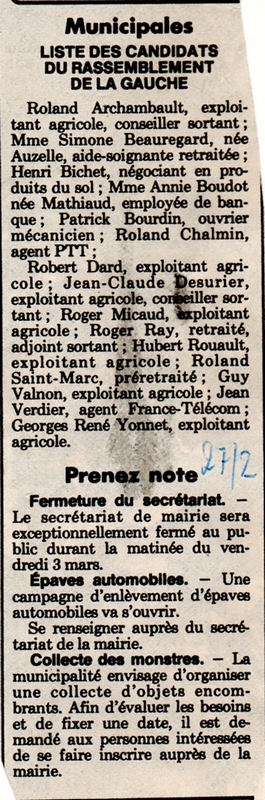 Liste du rassemblement de la gauche - La Montagne du 16 février 1989
