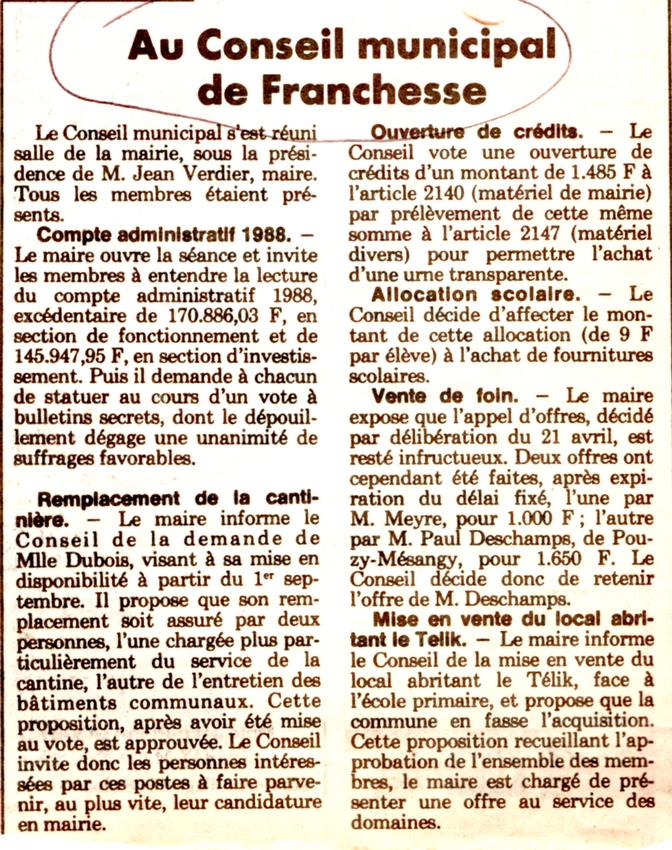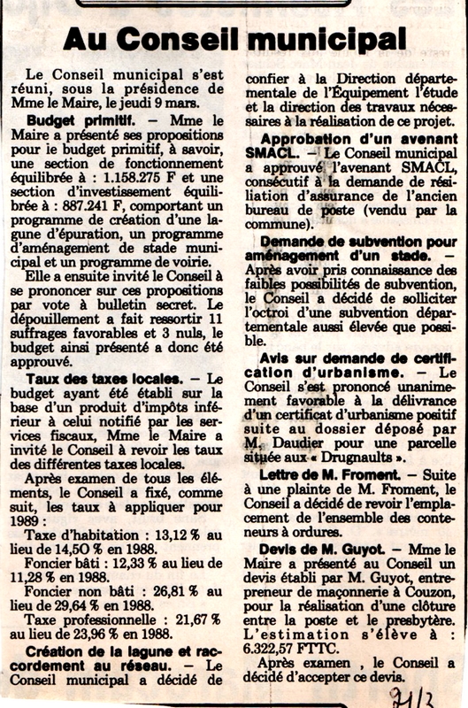 Au Conseil municipal - La Montagne du 16 septembre 1989