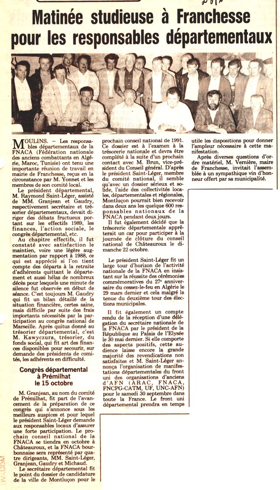 Matinée studieuse à Franchesse pour les responsables départementaux - La Montagne du 23 mars 1989