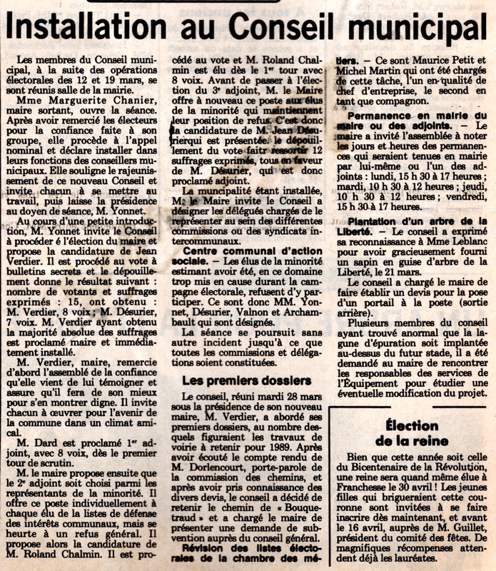 Installation au Conseil municipal - La Montagne du 3 avril 1989