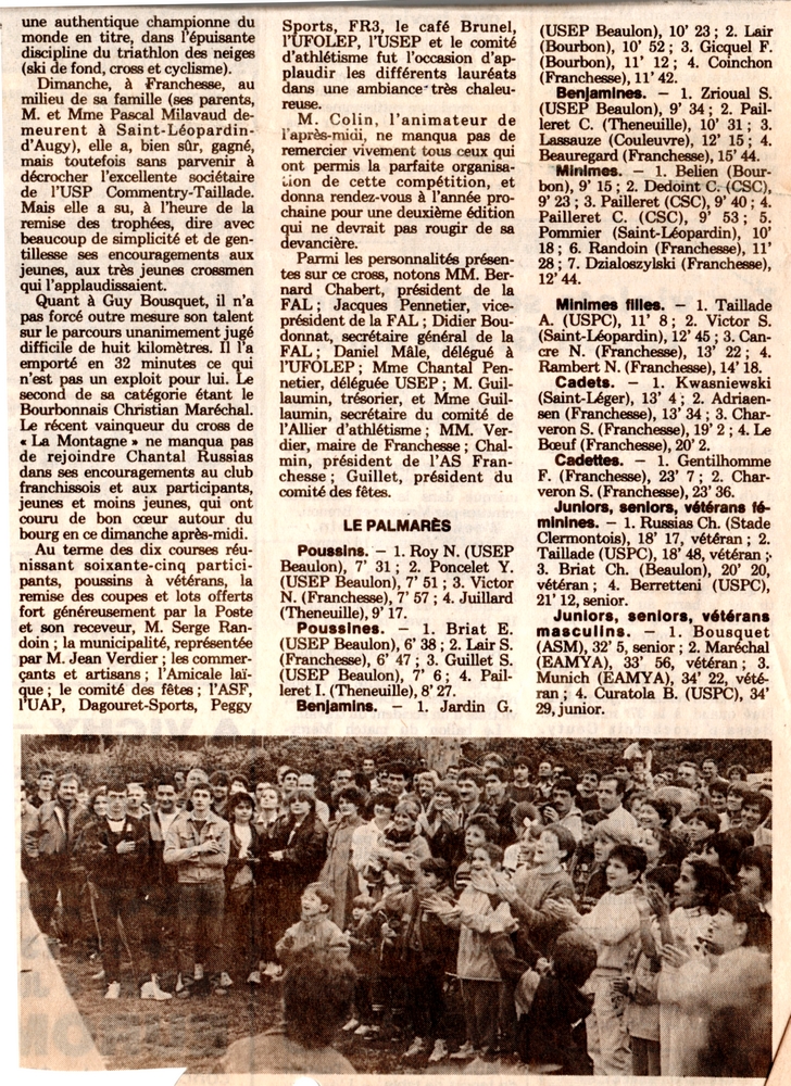 Premier crossde Franchesse : Chantal Russias et Guy Bousquet en héros - La Montagne du 12 avril 1989