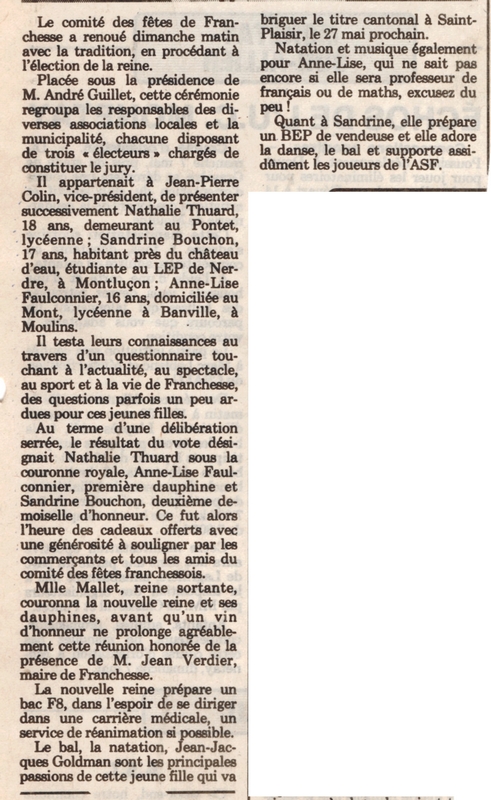 Nathalie Thuard élue reine de Franchesse - La Montagne du 5 mai 1989