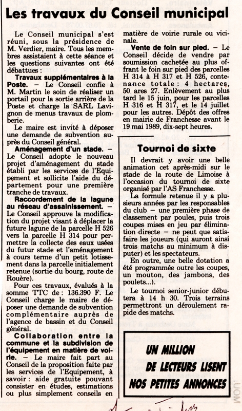 Conseil municipal / Tournoi de sixte - La Montagne du 8 mai 1989