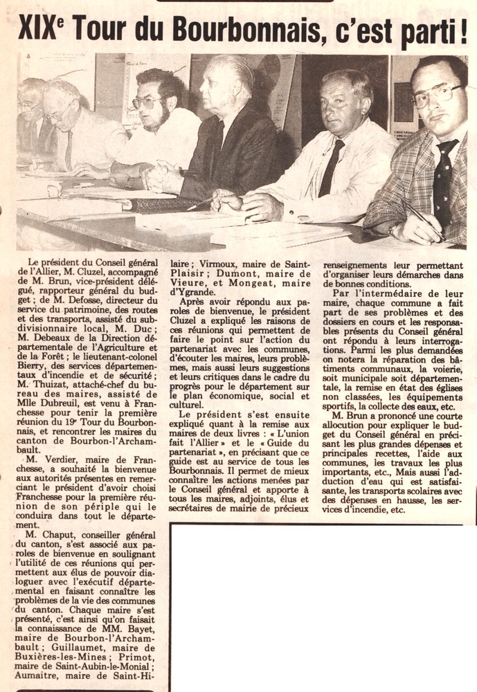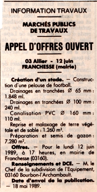 Franchesse et Bourbon les meilleurs / Appel d'offres - La Montagne du 17 mai 1989