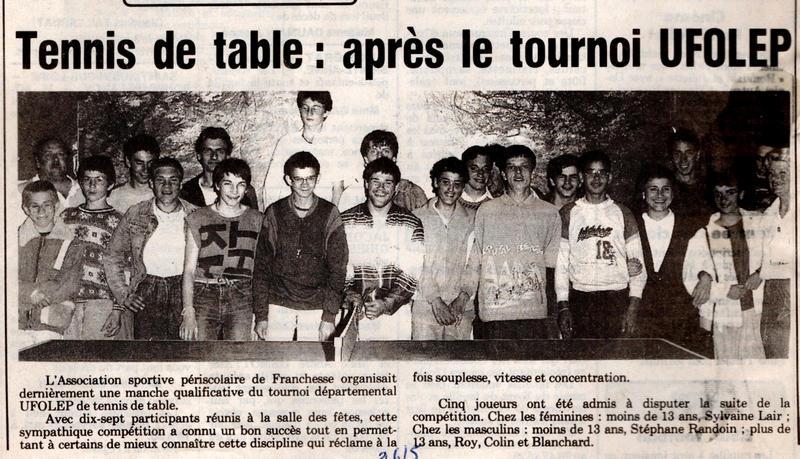 Tennis de table : après le tournoi UFOLEP - La Montagne du 26 mai 1989