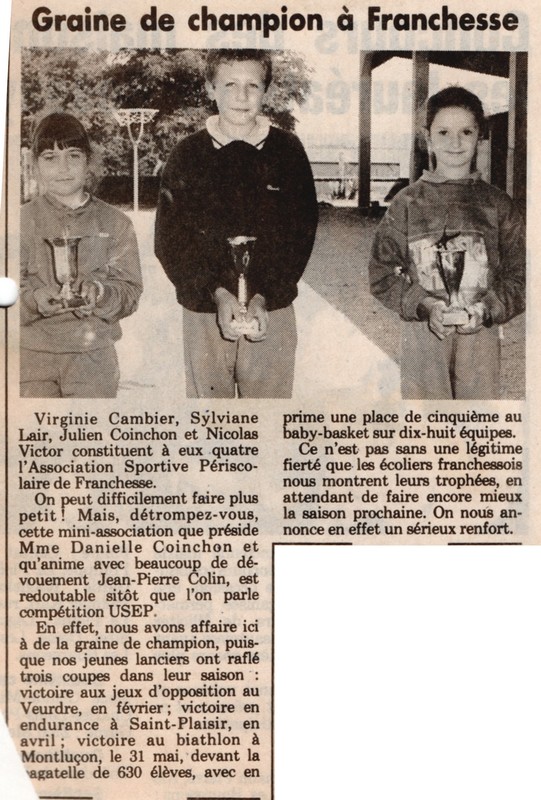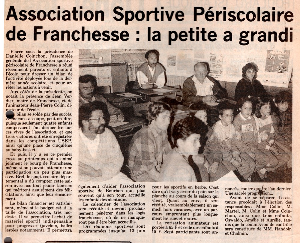 Association Sportive Périscolaire de Franchesse : la petite a grandi - La Montagne du 5 novembre 1989
