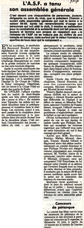L'A.S.F. a tenu son assemblée générale / Concours de pétanque - La Montagne du 16 juin 1989